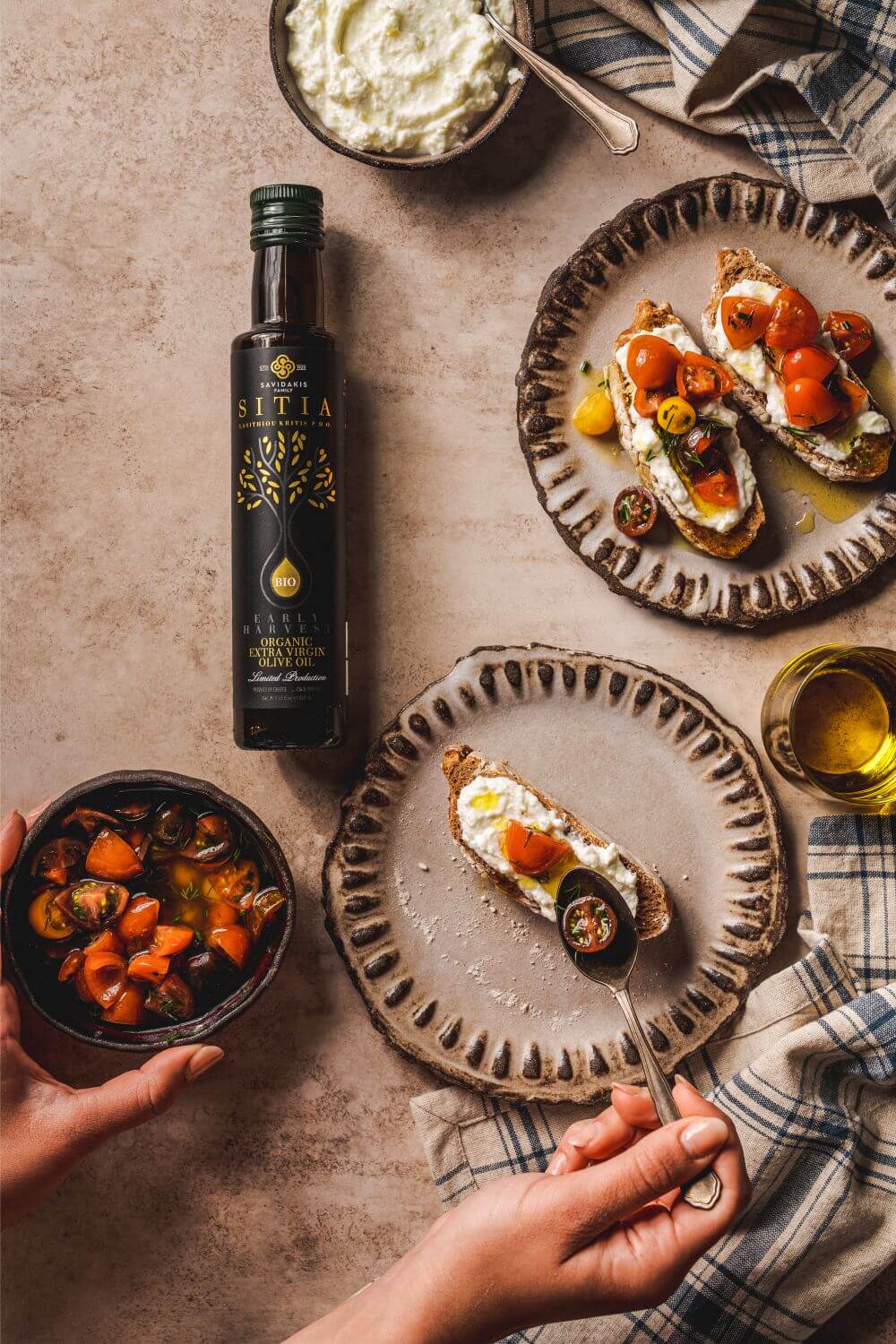 First the xygalo, then the cherry tomatoes, the spices and the fennel.