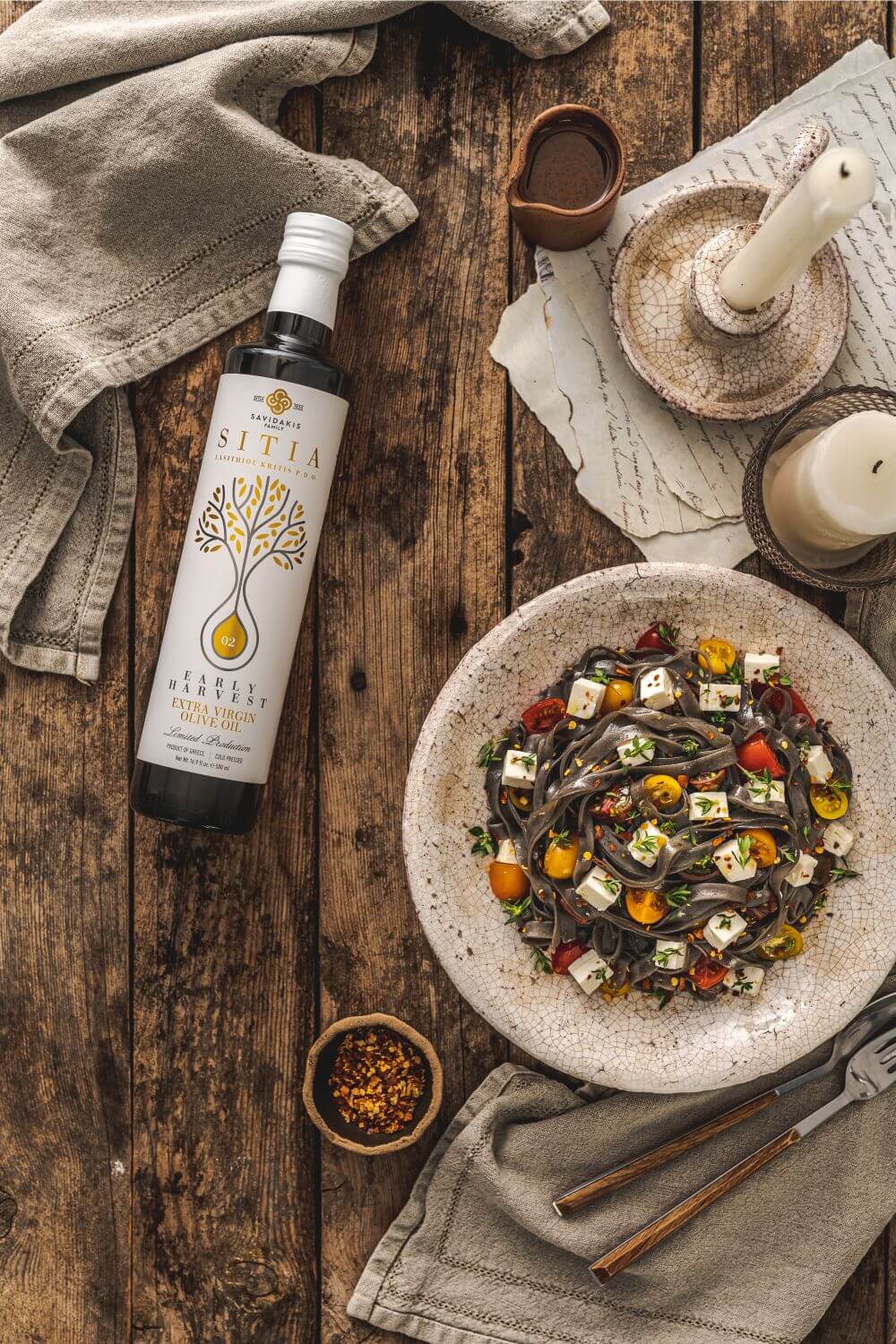High quality olive oil produced in the coastal area of Sitia, Crete. It is an extra virgin olive oil characterized as a PDO product of Sitia. The intense sunshine, the minimal rainfall, the olive groves located near the sea and at the same time at a high altitude favor the production of a unique olive oil with its own distinct identity. The art of cultivation and harvesting is a sacred process that is passed down from generation to generation. The olives are harvested in the traditional, manual way from the centuries-old olives of the Koroneiki variety. It is an exquisite olive oil with a strong fruity aroma, low acidity, high polyphenols which is the treasure of the Cretan land and the basis of the Mediterranean diet.